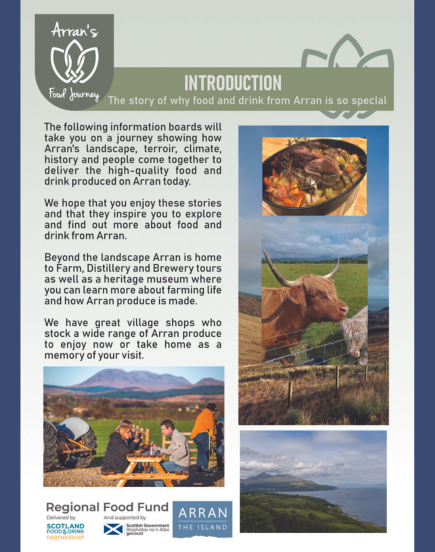 "A bi product of the data gathering exercise during the creation of the information boards has been the opportunity to meet many businesses and to hear their needs and expectations of Arran’s Food Journey.
